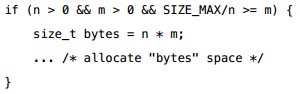 上面的代码中,大家要注意 (SIZE_MAX – m < n) 这个判断,为什么不用m + n > SIZE_MAX呢?因为,如果 m + n 溢出后,就被截断了,所以表达式恒真,也就检测不出来了。另外,这个表达式中,m和n分别会被提升为unsigned。
