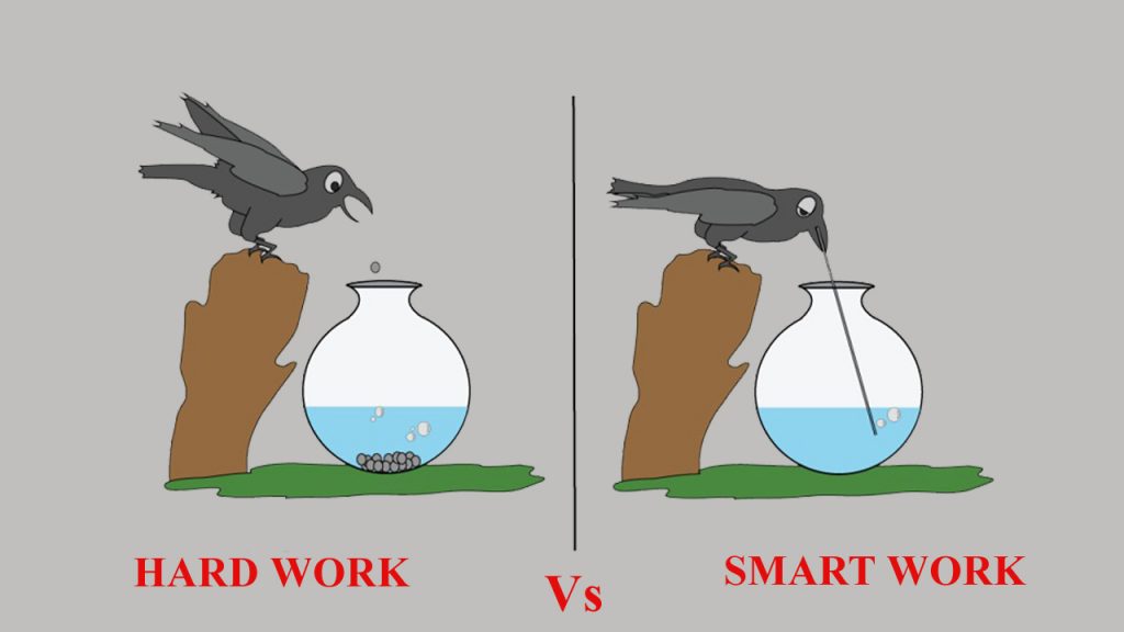 就拿你唯一的配图来说,看似拿吸管的乌鸦聪明,但是结合实际你会发现,一只乌鸦找到石头要比找到吸管容易的多,可能左侧的乌鸦扔石头已经把水喝完了,右侧的乌鸦还没找到吸管。