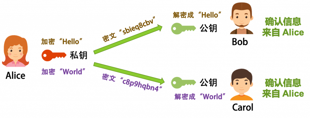 比如,我用我的私钥加密信息,然后,我把这个私钥所配对的公钥发布给所有人,大家都用公钥解密信息,不用我的公钥你解密不了这个信息。这样一来,就可以保证这个信息是我发出来的,不但保证了信息安全,还完成了身份认证。