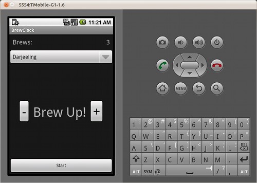 在模拟器中运行应用程序,定一个泡茶时间(这真是一个良好的借口去泡一杯你自己爱喝的茶哦)并退出应用程序,试着运行模拟器上的安装的其他应用程序确保BrewClock被终止。记住,除非这个应用程序已经不在内存中,否则Android不会终止一个Activity。