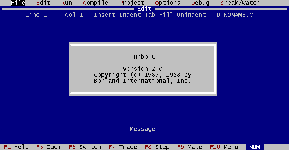 然后开始学C语言,于是Turbo C 2.0成为了那个时代的经典,我还记得当时学校里的386电脑没有内存,没有硬盘,只有两个软驱,一个是3寸的,一个是5寸,而Turbo2.0的大小太大(2M多)所以,得把所有的头文件和lib文件放在3寸盘上,而主程序员放在5寸盘上,A盘和B盘同时来编译我的C程序,编译的时候,那叫一个慢啊,那是一个听着软驱咯吱咯吱的声音的时代。
