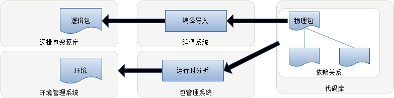 我们也已经知道,在部署时,一个环境实例将具体的确定其依赖的软件包的版本。某个版本的软件包最终与代码库中的物理的软件包相关联。但软件包是运行时的安装包,因此,它应该是代码库中包编译的结果。在对代码库的包编译时,既要将结果打上版本保存起来,也好在两者的版本间建立关系,最后,编译结果应该是某种既定的安装包目录文件结构。