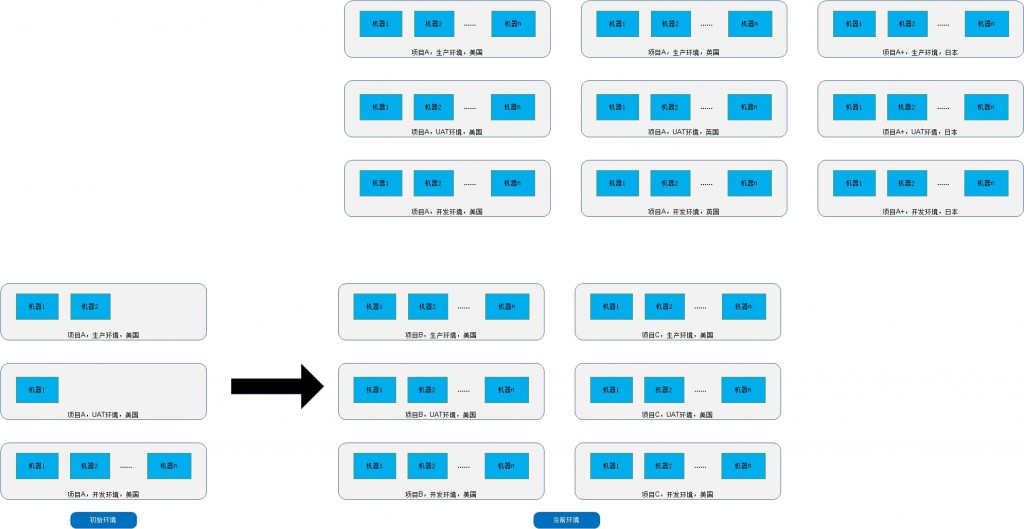 项目A和项目B都依赖于Web容器,公司决定升级Web容器版本,而公司要升级的机器有上百台,依赖人肉升级已不现实,维护团队因此针对各种软件开发了相应的自动化脚本,但当新的软件出现时,必须要开发新的脚本。而且当同时升级若干环境软件时,则难度随之增大,手工调度的方式极易出错,当升级失败时仍需要大量人工处理。由于存在大量升级脚本,有一定的维护成本。