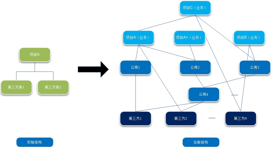 同时,原本单一的项目软件结构随着业务系统的增加也不再简单: