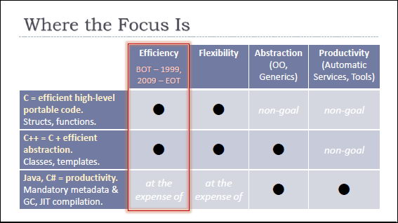 先说明一下,我不希望本文变成语言争论贴。希望下面的文章能让我们客观理性地了解C++这个语言。(另,我觉得技术争论不要停留在非黑即白的二元价值观上,这样争论无非就是比谁的嗓门大,比哪一方的观点强,毫无价值。我们应该多看看技术是怎么演进的,怎么取舍的。)