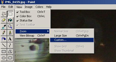 我打开了一个比较大的图片,有点太大了,我想缩小一下看看,很好,微软在菜单项里供了Zoom选项,其中有一个Custom(自定义),挺不错的。